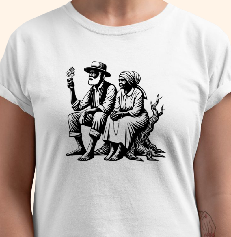 Camiseta "Casal Pretos Velhos", estampa exclusiva "Pemba Mágica", Material que agrega fé, qualidade e conforto. Idealizada com todo carinho e respeito, de macumbeiro para macumbeiro. Vista a sua Fé com estilo e reverência através das camisetas que já são sucesso entre o Povo do Axé.